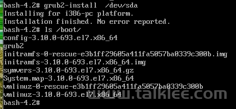 sh-4.2# chroot /mnt/sysimage(切根) bash-4.2#ls /boot/
